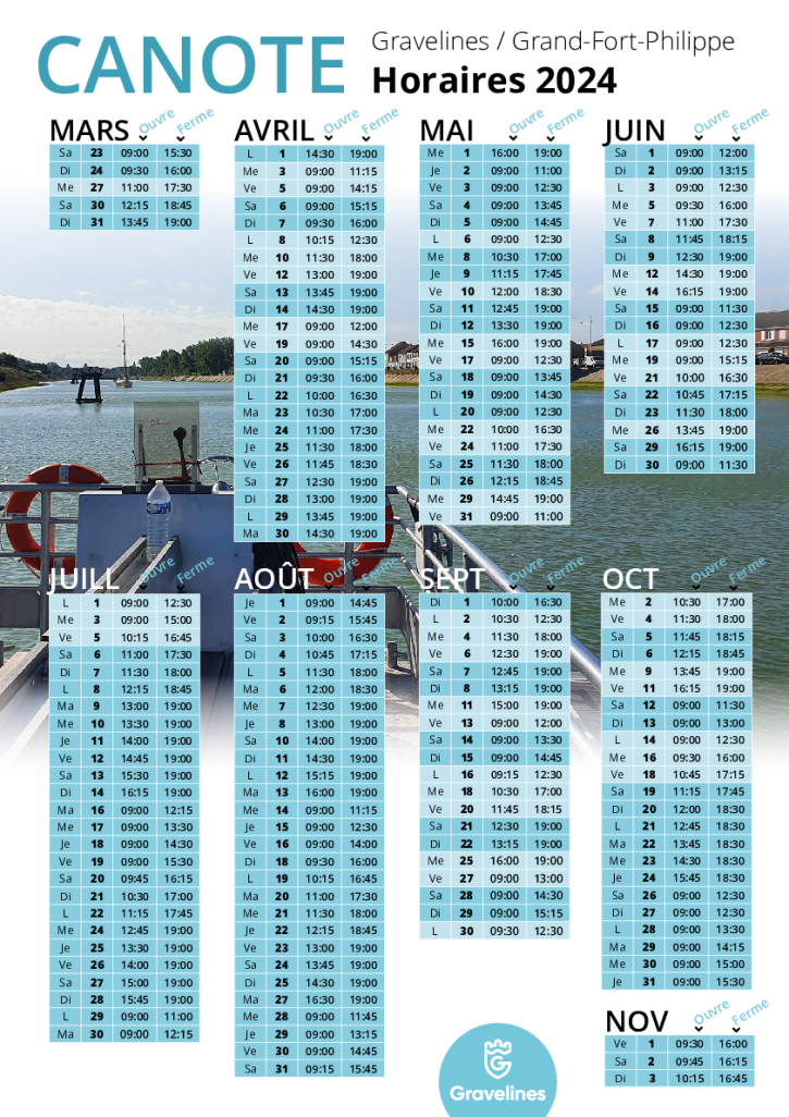 CONSULTEZ LES HORAIRES DE LA CANOTE :
