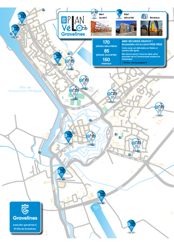 Gravelines est reliée par des itinéraires agréables avec les communes voisines de Grand-Fort-Philippe et d’Oye-Plage à l’Ouest, de Saint-Georges-sur l’Aa et de Bourbourg au Sud, et de Craywick et Loon-Plage à l’Est.