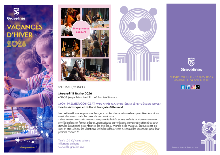 Les petits mélomanes pourront bouger, chanter, danser et vivre leurs premières émotions musicales au son de la harpe et de la contrebasse. « Mon premier concert » propose aux parents de très jeunes enfants de vivre