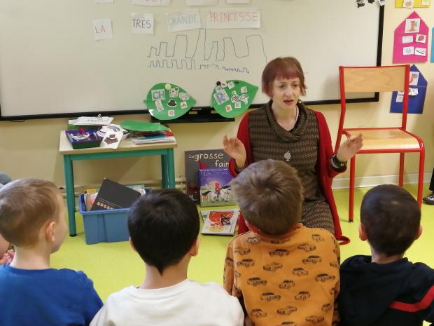 La veille, elles ont bénéficié d’une séance de sensibilisation pour préparer les élèves à prendre part à ce spectacle. L’artiste leur a déjà demandé ce qu’évoquait le titre du spectacle. Elle leur a expliqué le thème du spectacle et l’attitude à avoir pendant le spectacle (ne pas parler pendant le spectacle, pour savoir si l’on aime ou pas il faut écouter, aider l’artiste à réussir son spectacle…). Cette rencontre est un premier lien créé pour le jour du spectacle. Les enfants retrouvent l’artiste habillée différemment car elle leur a expliqué qu’elle ferait plusieurs voix.